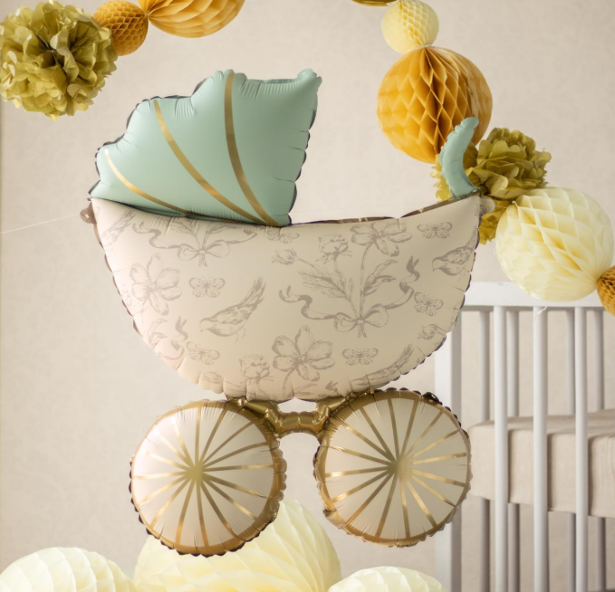 Celebrate the arrival of a little one with our elegant Baby Stroller Foil Balloon! Designed with beautiful gold details and a classic carriage shape, this charming balloon adds a touch of sweetness and sophistication to any baby shower, gender reveal, or newborn celebration.
