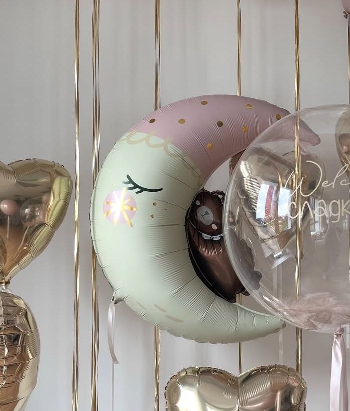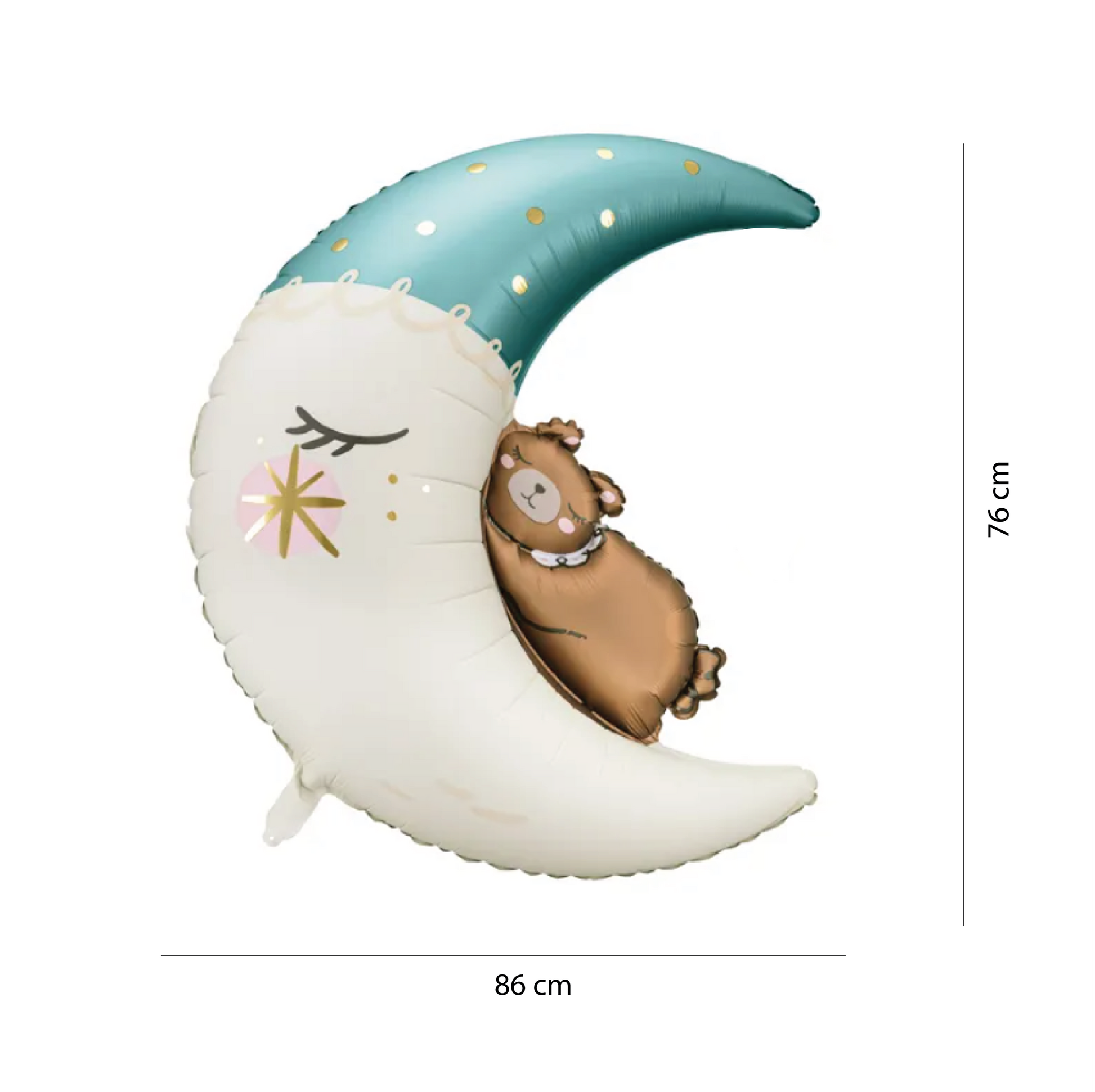 Create a dreamy atmosphere with our Moon and Bear Foil Balloon! This enchanting design features a crescent moon with a sleeping teddy bear, making it the perfect centerpiece for baby showers, gender reveals, or bedtime-themed parties.