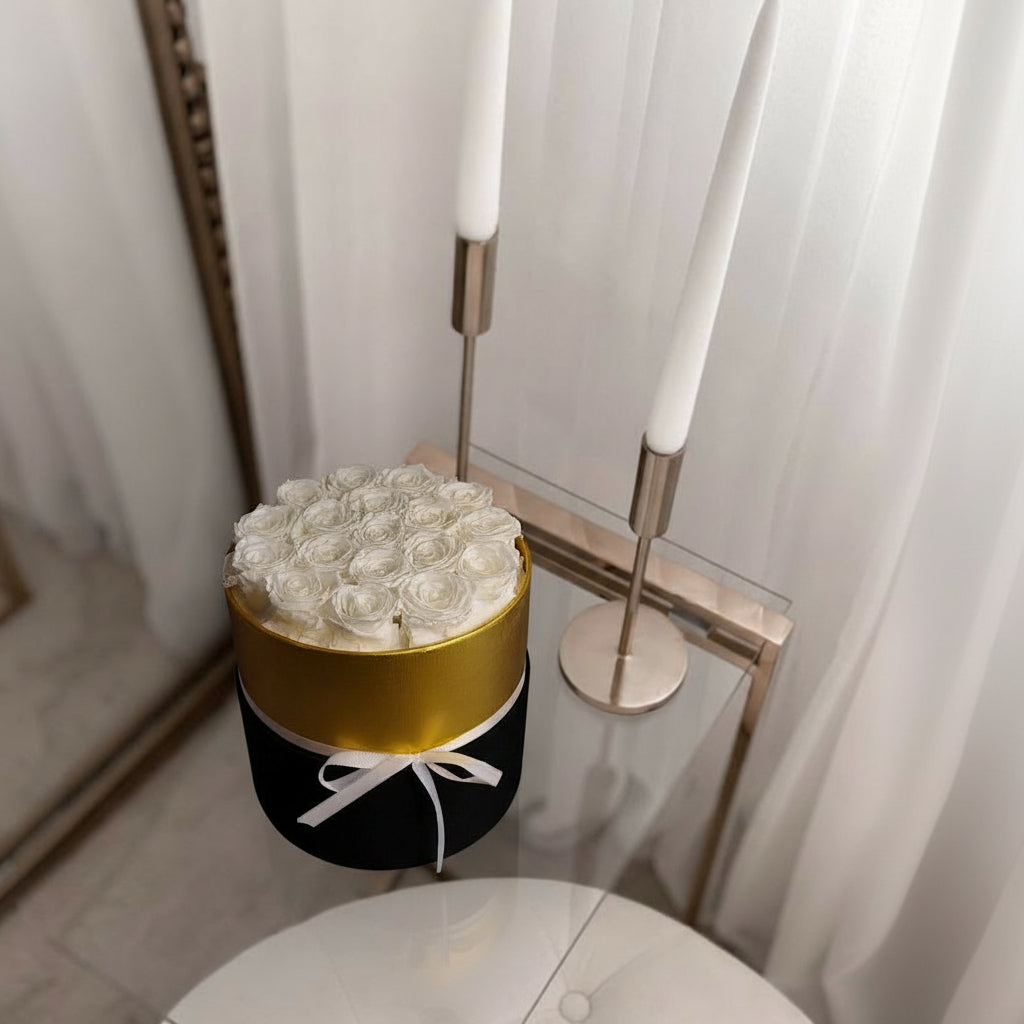 This enchanting arrangement features 18 preserved roses, carefully crafted to keep their natural beauty for over 3 years—without water or sunlight.